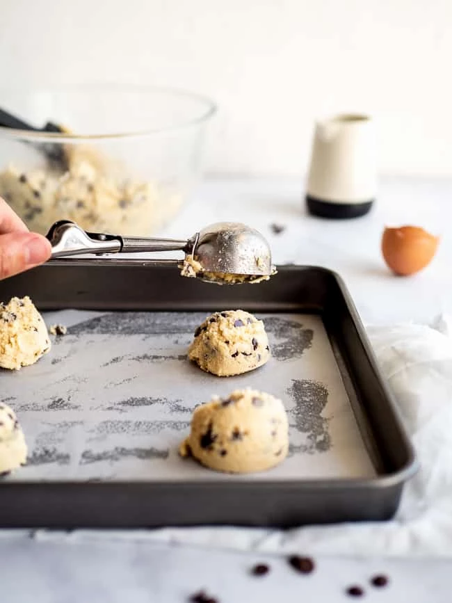 Remove dough from bowl and add in your chocolate chips kneading them into the dough.