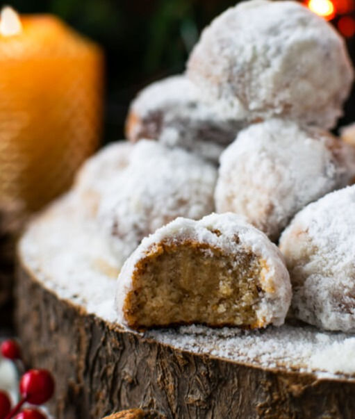 Powdered erythritol is the sweetener for these tasty little snowball cookies. It has zero net carbs and makes the cookies nice and sweet. Once the cookies are baked, they are rolled in extra powdered erythritol to give them that snowball look. This tasty sweetener is pretty and yummy!